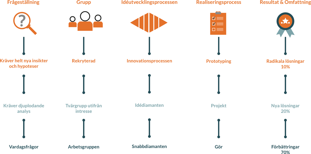 20%-nivån: Idédiamanten™ är en idéutvecklingsmetodik som ligger till grund för idégenerering och som är anpassningsbar och används i olika varianter på alla tre nivåerna.